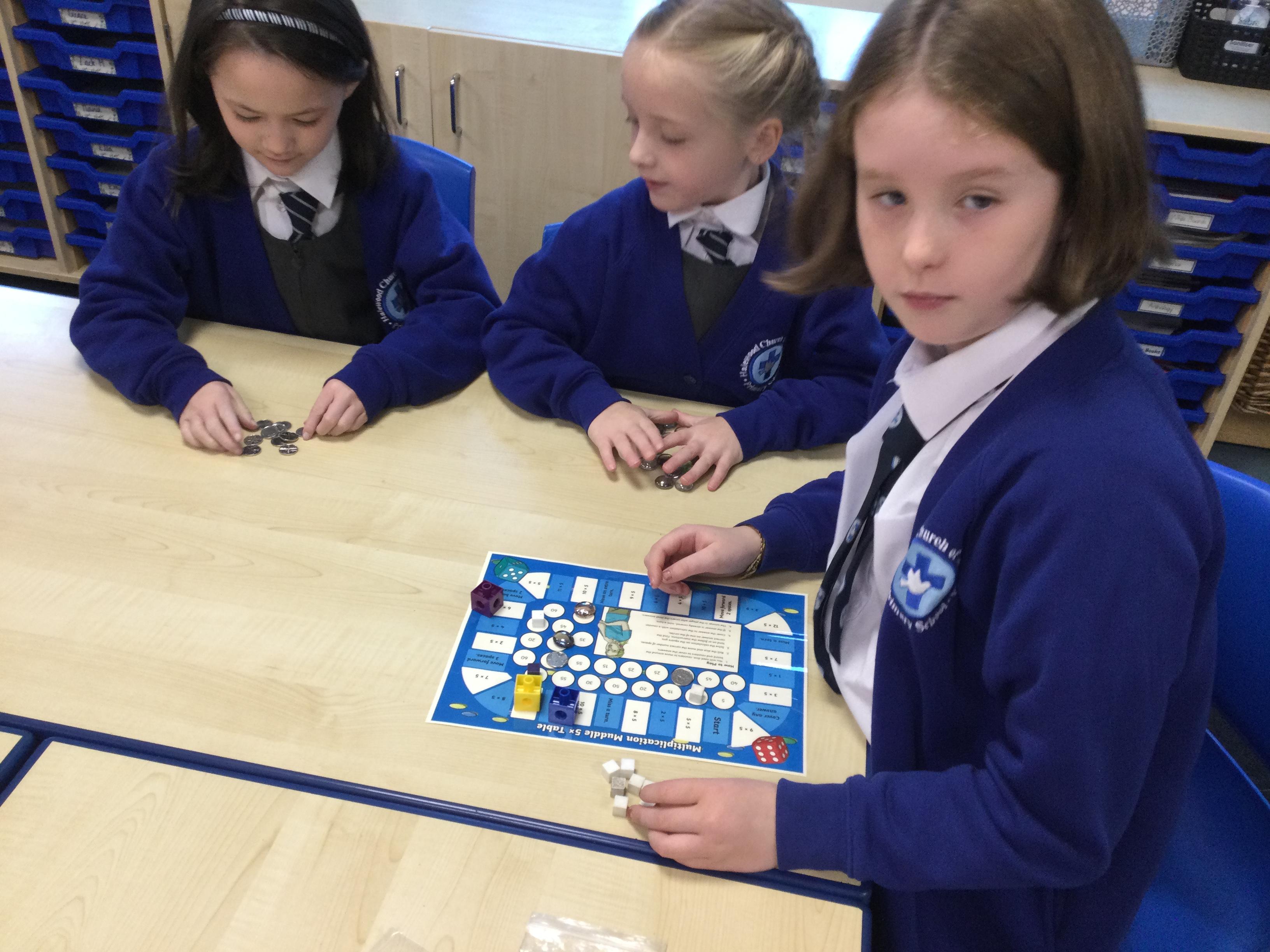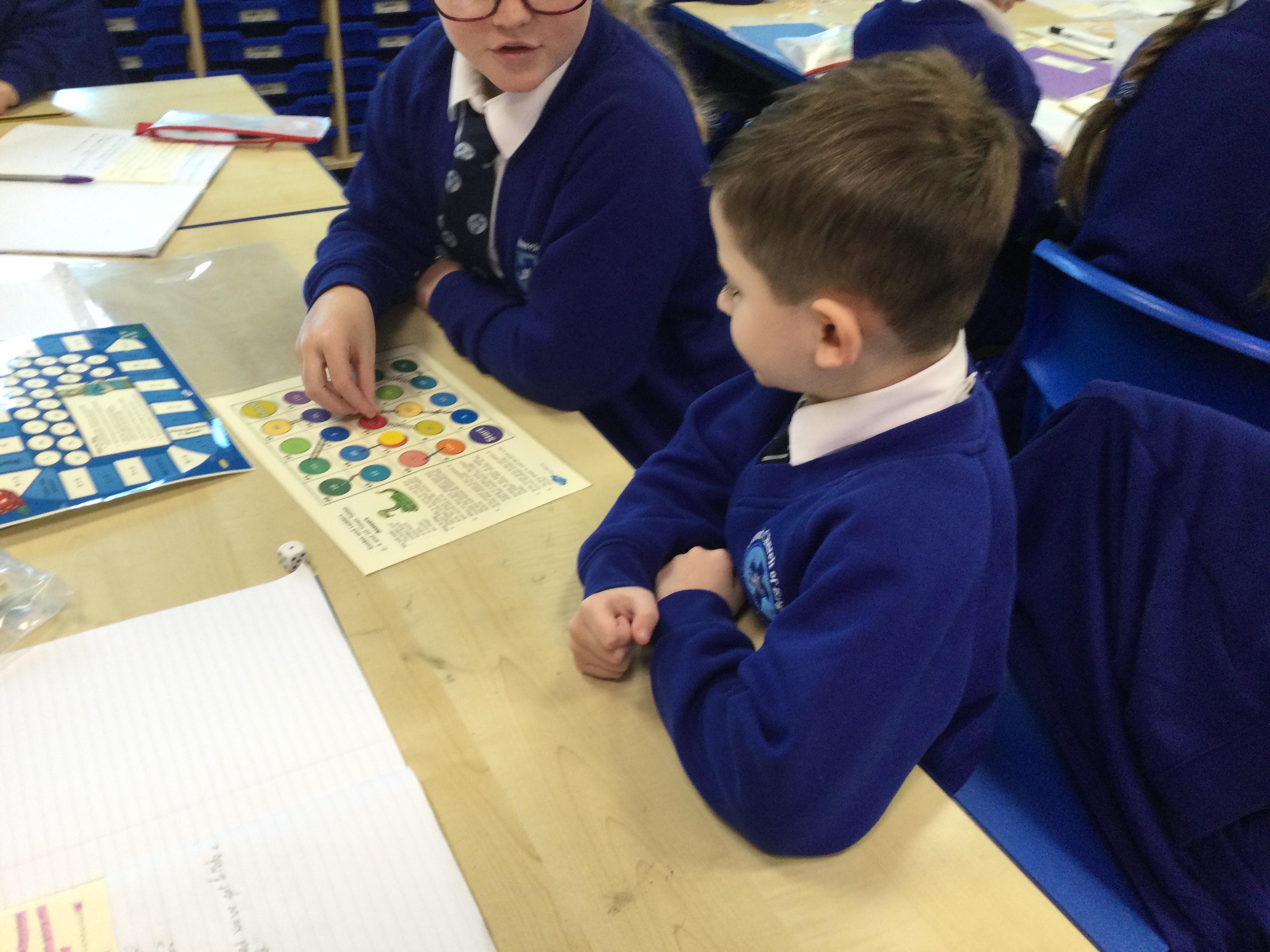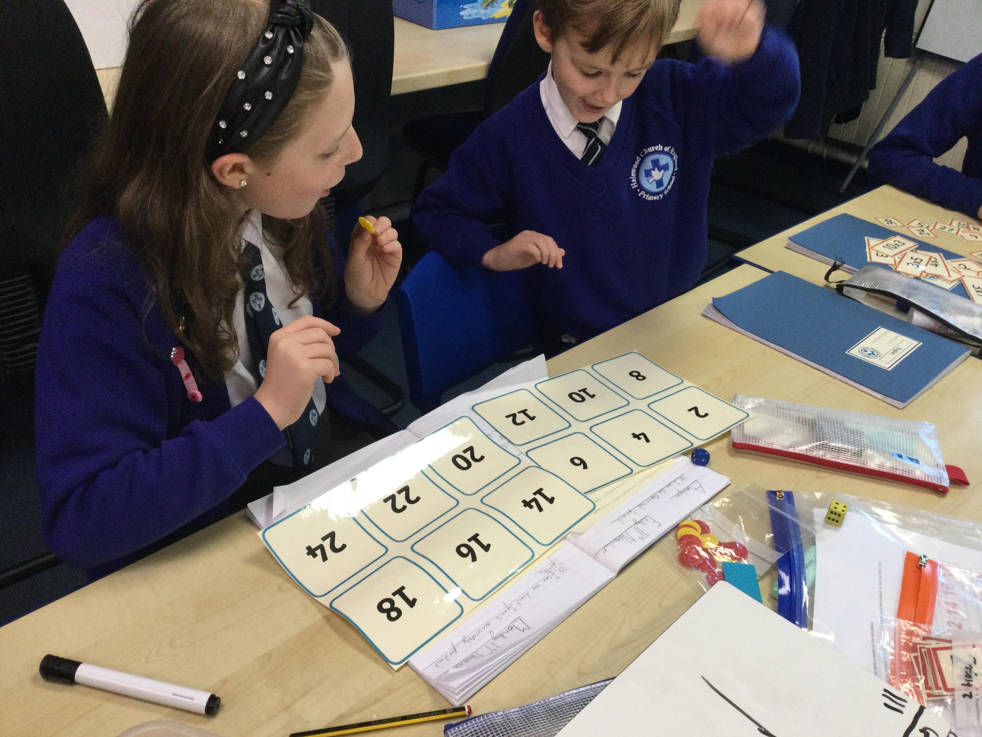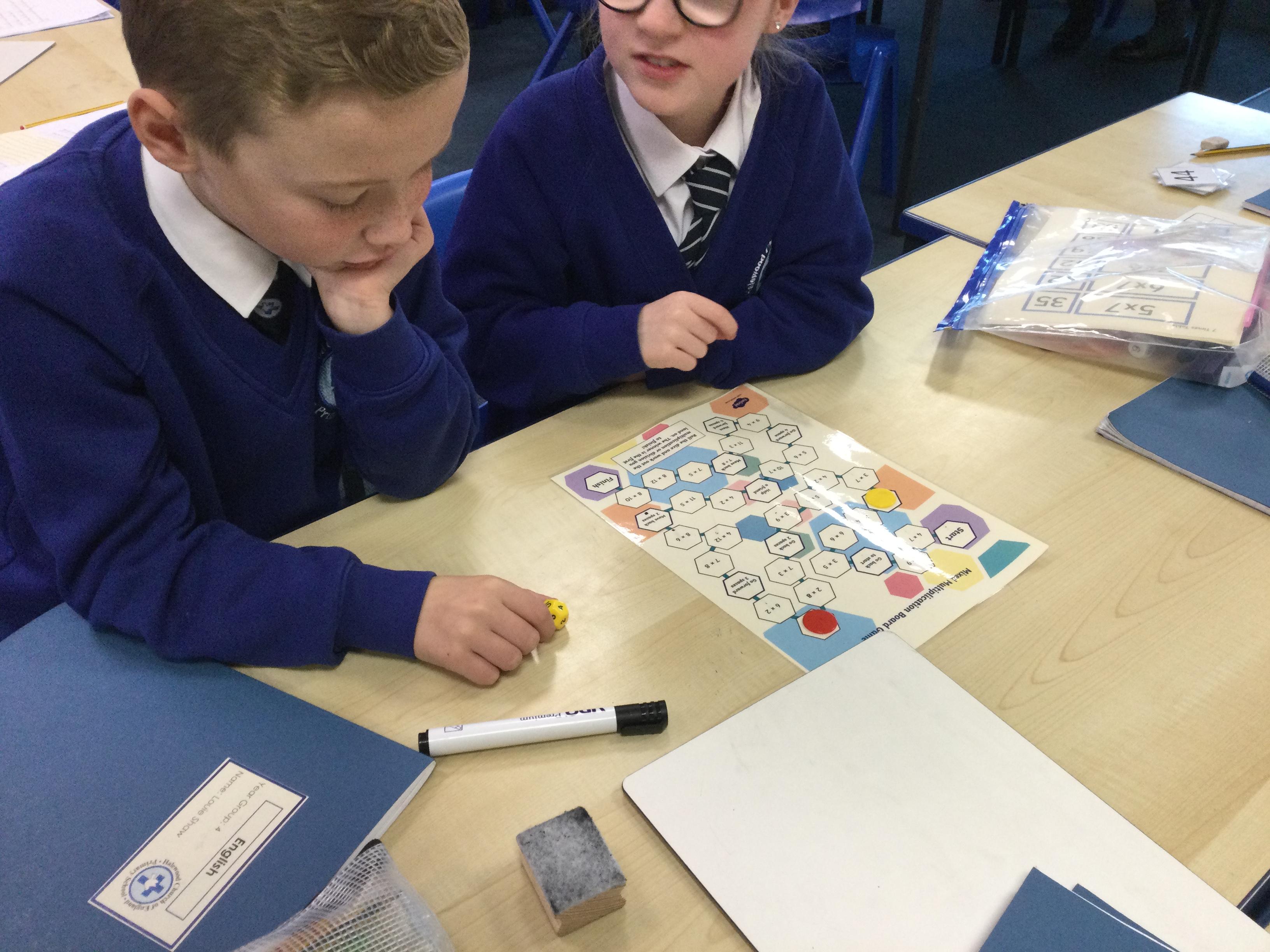 Our Year 6 children work with children across the school each week to help them to develop fluency with their times tables. They are fantastic at using concrete resources and pictorial representations to help the children to make connections and understand the relationships between multiplication and division. They love to make the learning fun and interactive; the children often go outside to make up games linked to times tables.