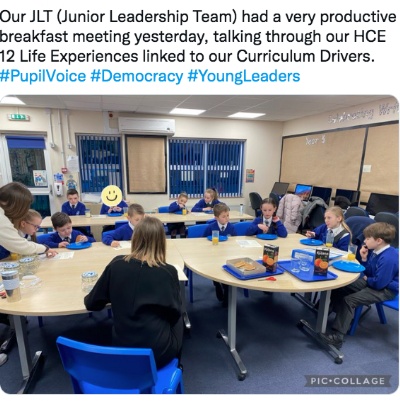 Junior Leadership Team - our school JLT have driven community improvements including clothing recycling, safe parking and litter picks. The Junior Leadership Team are the voice of the children and organise projects that work with the school community and local community to drive improvements; they are also part of developing the strategic direction of the school.